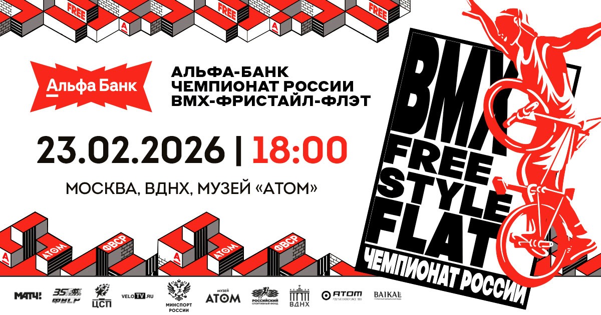 Альфа-Банк международные соревнования по велосипедному спорту BMX - Фристайл - ФЛЭТ, 23 февраля г. Москва 18:00 Мск